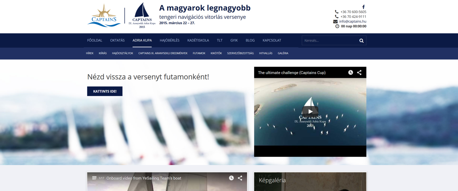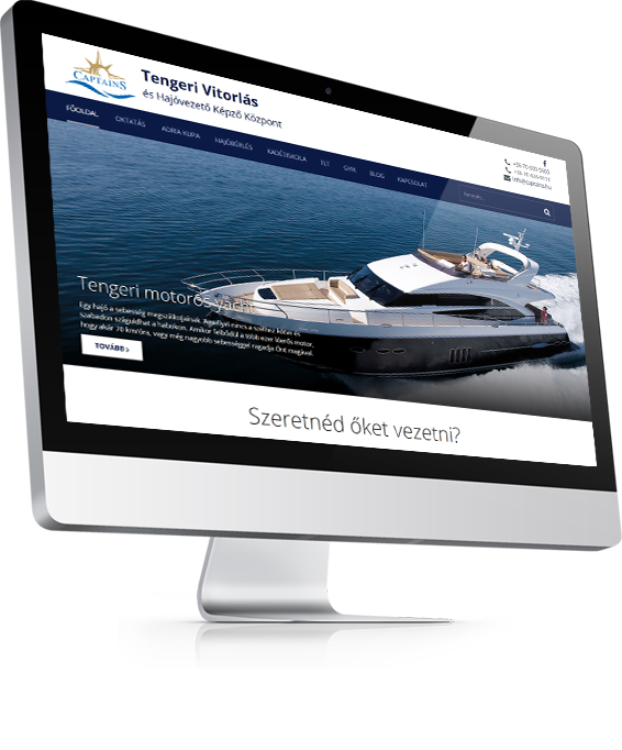 A Captains Kft. egy tengeri vitorlás és hajóvezető képző központ, azonban tevékenységi köre nem redukálódik egyszerűen csak az oktatásra, hiszen hajó bérlésre is van lehetősége az oldalra látogatóknak. A reszponzív, WordPress tartalomkezelővel ellátott oldal rendelkezik social media, illetve Google maps integrációval, továbbá rendelkezik bloggal, illetve elláttuk egy speciális ajánlatkérő felülettel is, amely a hajóbérlés menüponton belül érhető el.