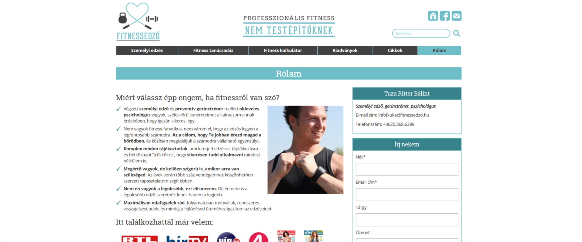 A fitnessedzo.hu Tuza Ritter Bálint személyi edző, gerinctréner és okleveles pszichológus oldala, aki 100%-ig személyre szabott szolgáltatást nyújt a mozogni vágyóknak. Teljes mértékben ügyfeleire koncentrál, és edzésterveit, illetve étkezési rendjeit is ügyfelei képességeihez mérten állítja össze. Számára egy WordPress alapú reszponzív weboldalt készítettünk, amely összeköttetésben áll a Mailmaster rendszerével. Rendelkezik Social media, illetve Google maps integrációval, valamint üzenetküldési lehetőséggel és bloggal, ahol érdekes cikkeket olvashat a látogató mozgásról, egészséges táplálkozásról. Az oldal mobil eszközökről is kényelmesen elérhető.