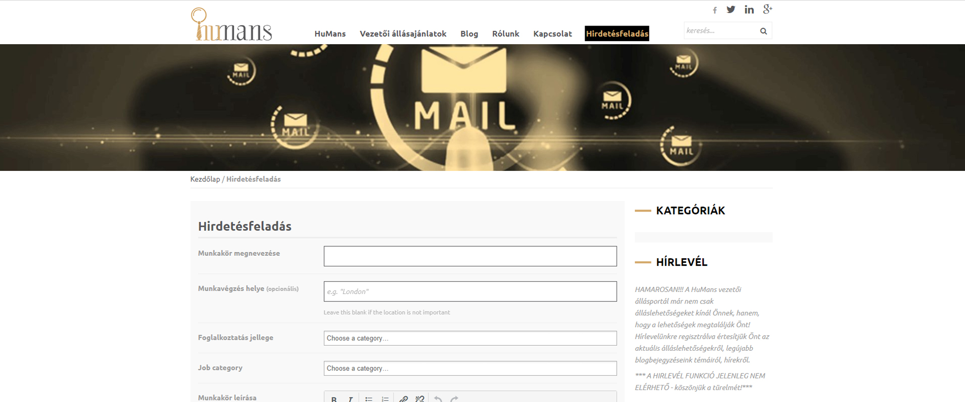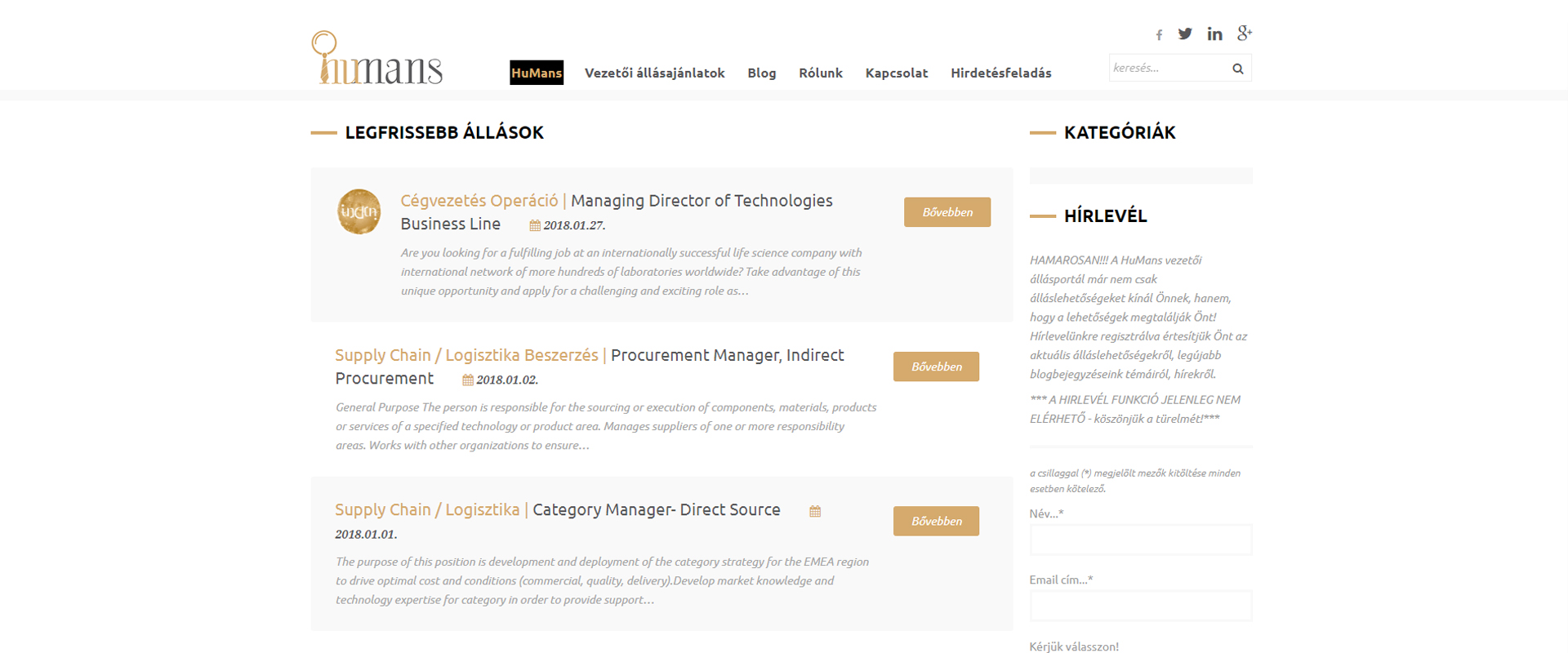 A Humans weboldal készítésekor fontos szempont volt, hogy a látogatók a lehető leghamarabb eljussanak a számukra érdekes álláslehetőségekhez. A visszajelzések pozitívak, büszkék vagyunk, hogy mi készíthettük el. :)