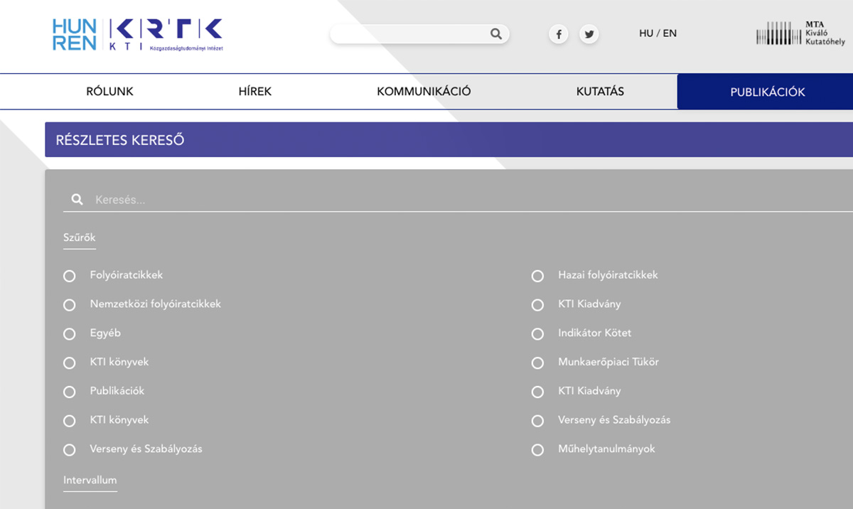 A Közgazdasági- és Regionális Tudományi Kutatóközpont megbízásából egy bemutatkozó weboldalt készítettünk, mely magába foglalja az alintézményeket is. Az oldal eseményeket, publikációkat, híreket és szervezeti adatokat mutat be a felhasználóknak. WordPress alapú php motor felhasználásával egyedi design alapján készült az oldal.