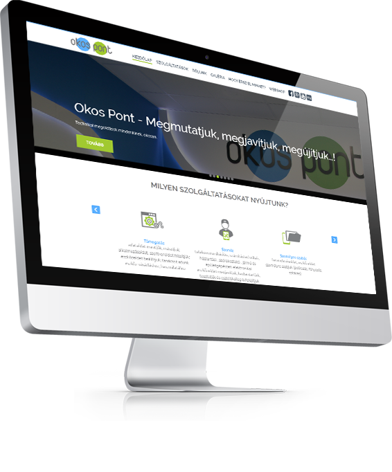 Az Okos Pont számára egy fiatalos letisztult könnyen átlátható weboldalt készítettünk el, mely mobil eszközökre optimalizált, reszponzív kialakítású. A weboldal hátterében egy egyedi fejlesztésű rendszer működik, melyen keresztül könnyedén kezelhető a teljes tartalom és az egyedi fejlesztésnek köszönhetően a későbbiekben bármikor korlátok nélkül továbbfejleszthető.
